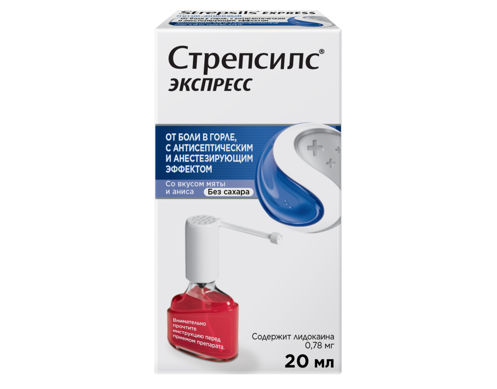 Стрепсилс® Экспресс со вкусом мяты и аниса (спрей для местного применения дозированный, 20 мл)