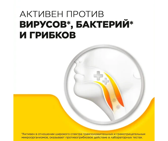 Таблетки для рассасывания [медово-лимонные]: желтые плоскоцилиндрические таблетки с изображением буквы S с 2-х сторон таблетки. Допускается белый налет, неравномерность окрашивания, наличие пузырьков воздуха в карамельной массе и незначительная неровность краев.